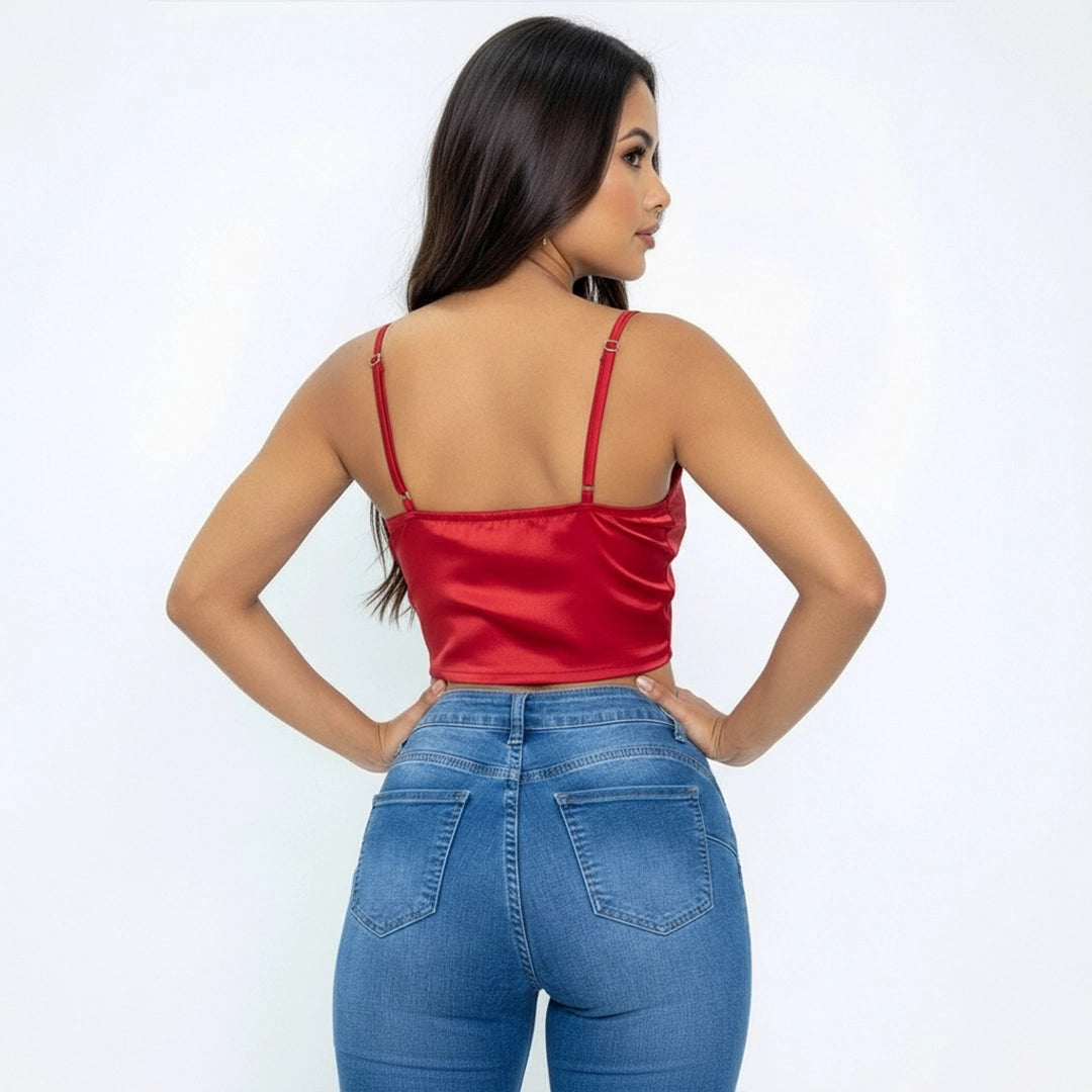 Ideal para salidas nocturnas, cenas especiales o eventos donde quieras robar miradas. Llévalo con jeans de tiro alto o faldas fluidas para un contraste de impacto. Su color oscuro y diseño asimétrico favorecen tu figura y reflejan una actitud segura y femenina.