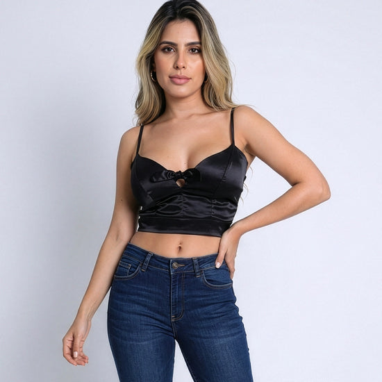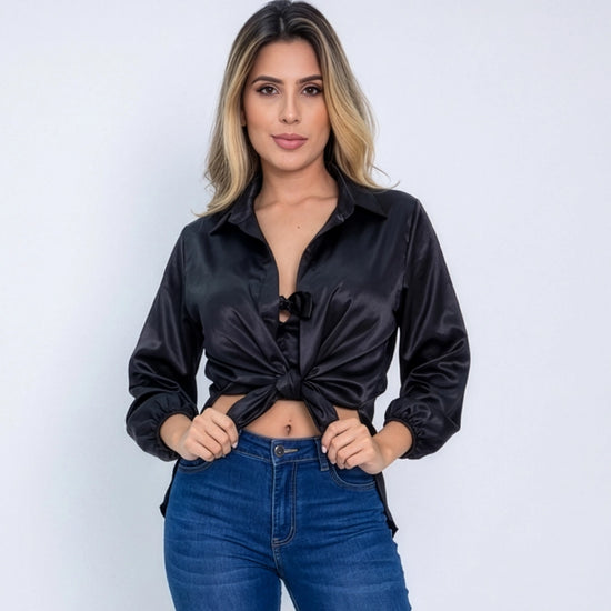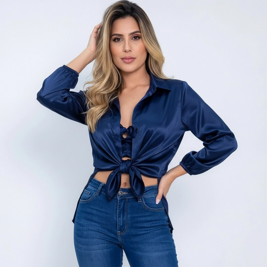 Duo Satín compuesto por un conjunto versátil que combina un Crop Top y una Blusa Camisera, ambos confeccionados en suave Santin. El Crop Top añade un toque seductor con su diseño ajustado, mientras que la Blusa Camisera aporta elegancia y comodidad con su corte fluido. Perfecto para crear looks sofisticados y modernos.