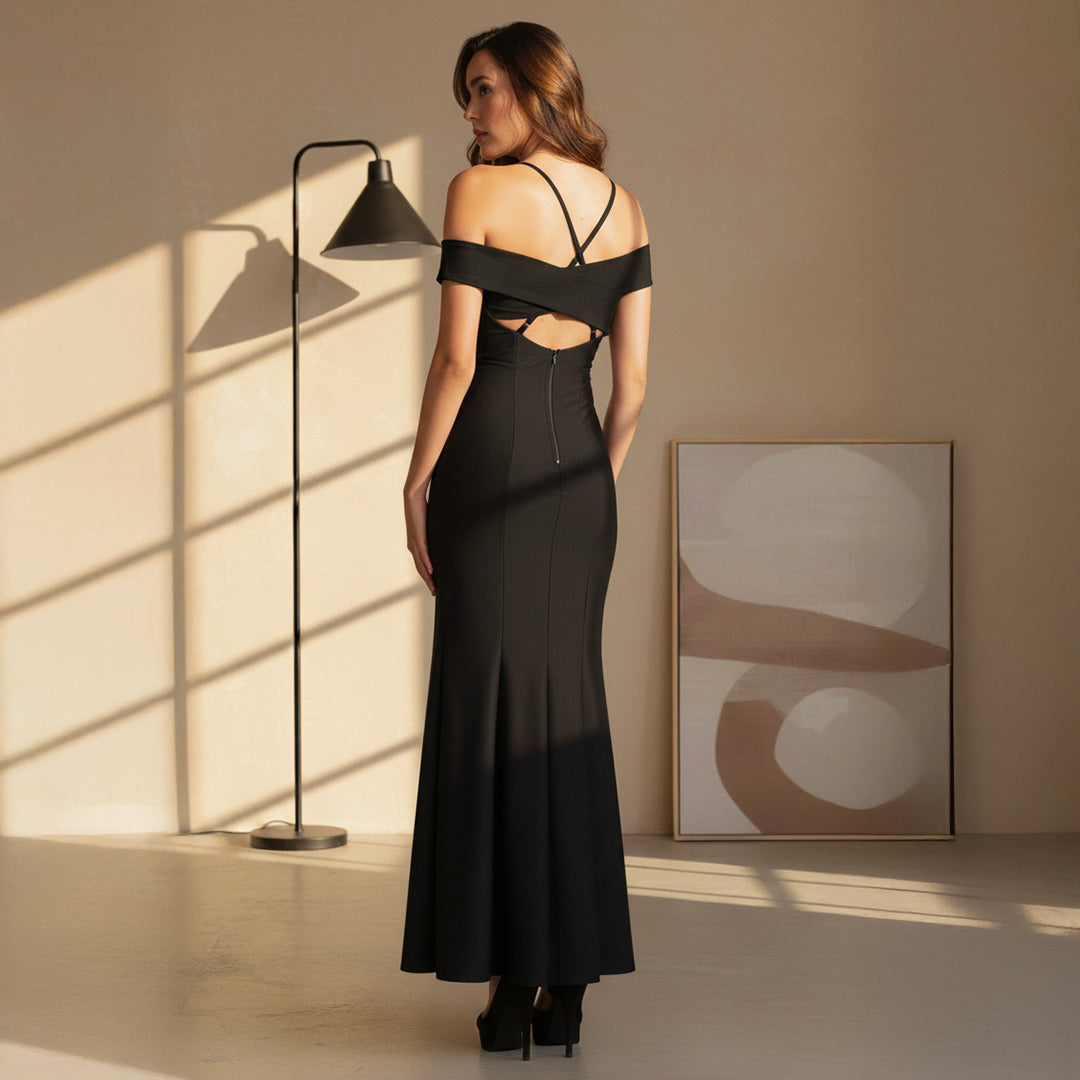Este sofisticado vestido largo combina elegancia y glamour con un toque moderno. Confeccionado con tela de lycra brillante de alta calidad, ofrece un ajuste ceñido y favorecedor. El escote bandeja realza tus hombros y añade un toque de sensualidad, mientras que la tela brillante proporciona un acabado deslumbrante. Ideal para ocasiones formales y eventos especiales, este vestido te hará destacar con estilo y confianza en cualquier situación.